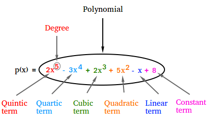 p(x) = anxn + an-1xn-1 + ... + a2x2 + a1x1 + a0