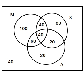 360 + 240 = 560 + n(M ∩ S ∩ A)